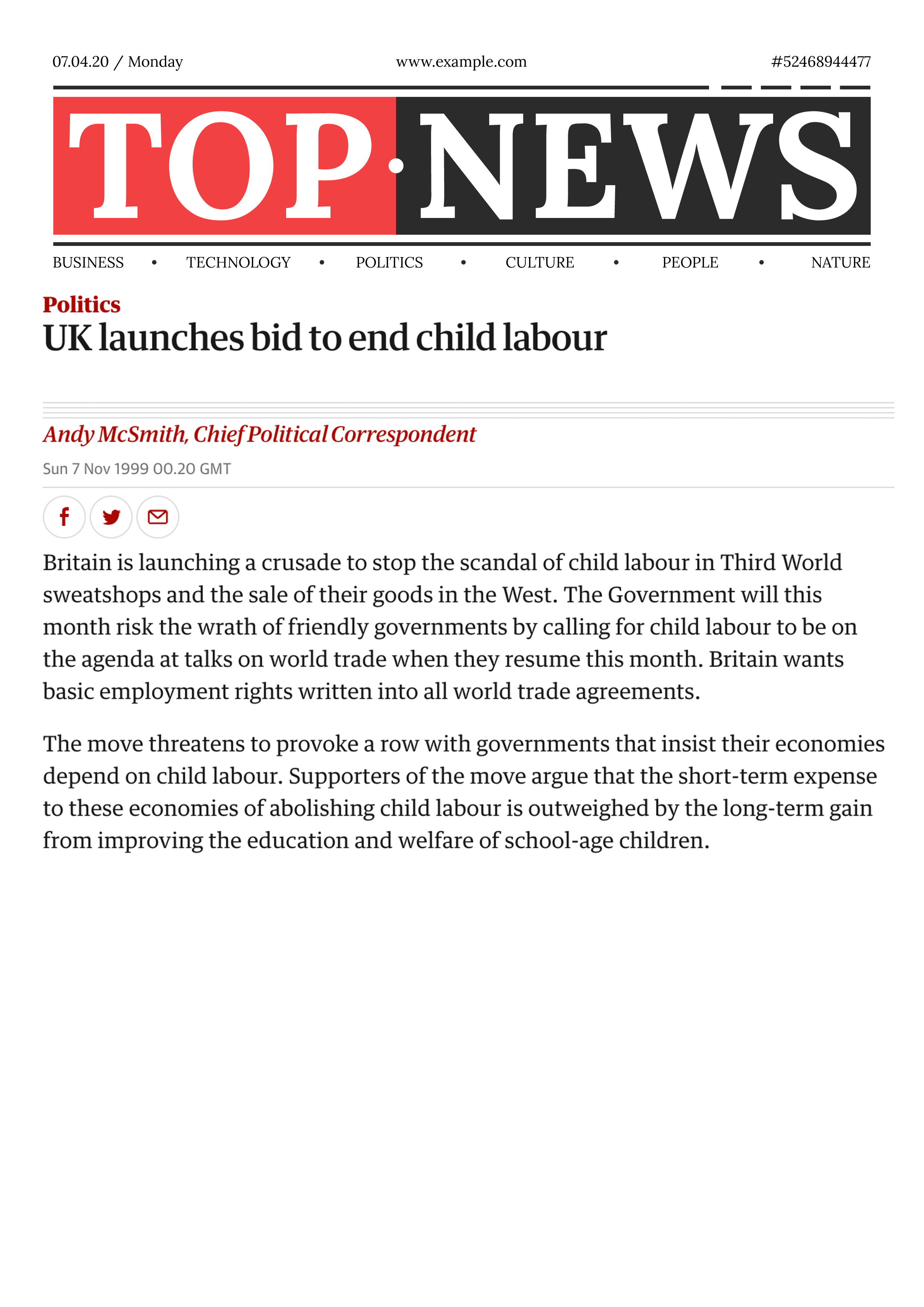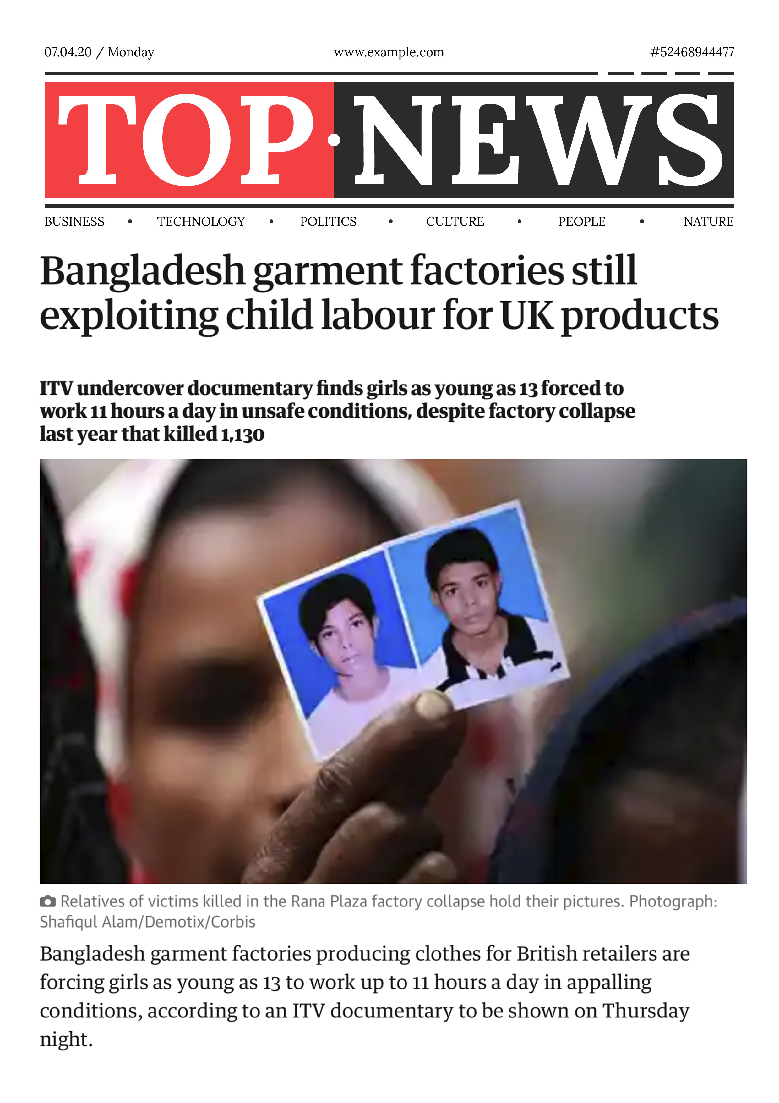When we were gathering news, we found that there was a lack of cases and news about child labour in the UK, with more news stories being reported from Asia and Africa. To find out the reason, we conducted research and found that, in the 21st century, Europe reached a high level of economic development and British domestic companies manufactured their products through overseas factories, using cheap labour to reduce costs and increase profits. Most of these overseas factories are located in low-income countries or developing countries, which need a lot of labour to produce and manufacture, resulting in illegal child labour and forced labour in factories(Edmonds and Pavcnik, 2005).