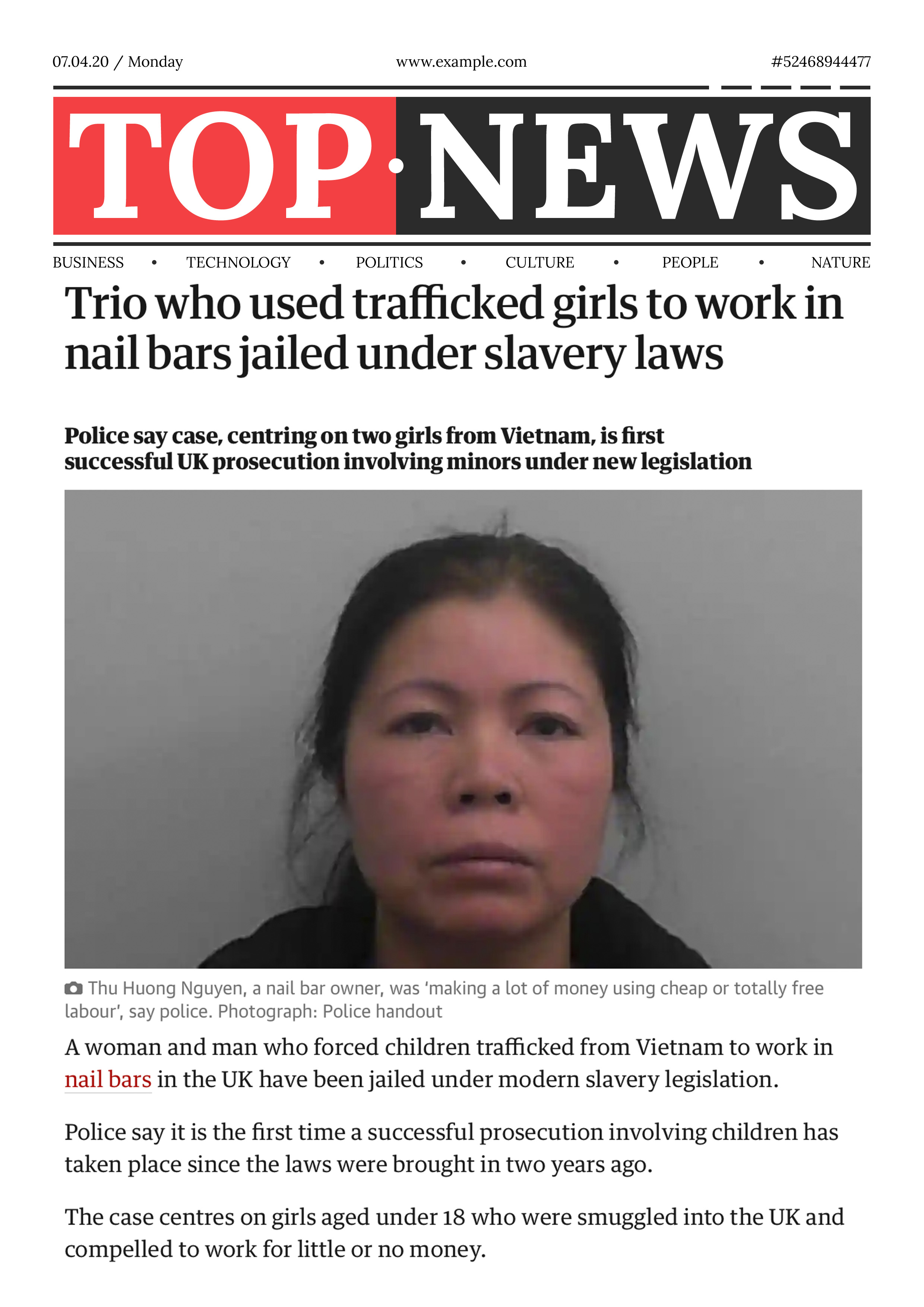 Trio who used trafficked girls to work in nail bars jailed under slavery laws(Morris, 2018)